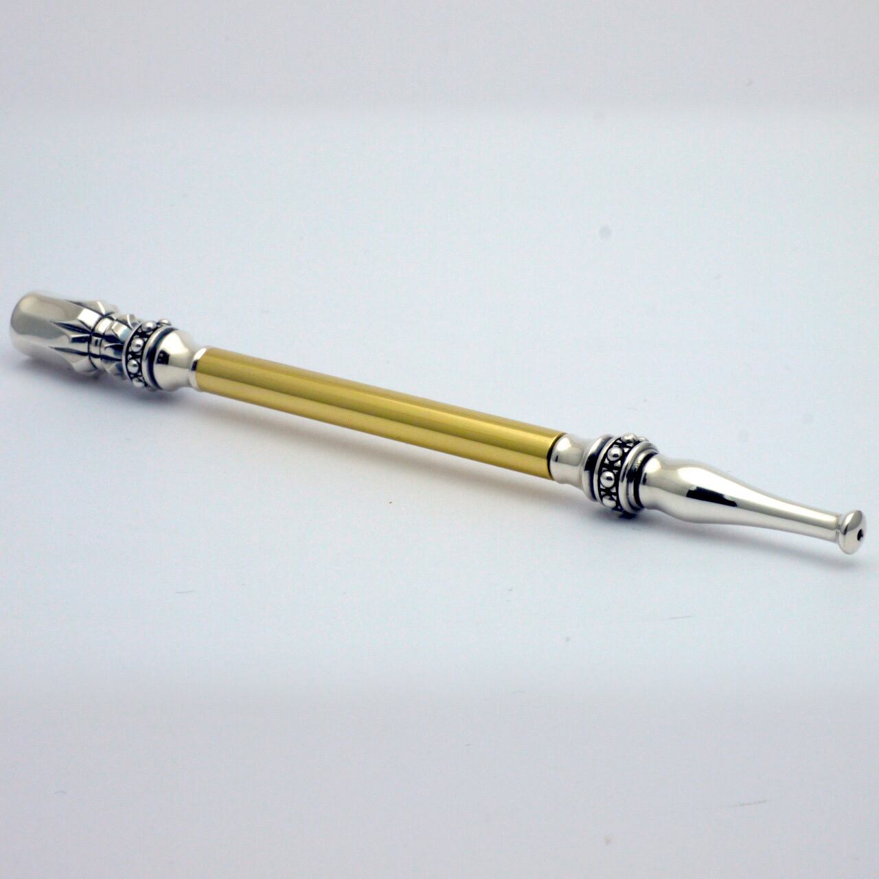 【シガレットキセルについて】「たばこであそぶ」ために制作した【 DaDa silver works 】の「大人の物好き」なシガレットホルダーです。キセルの雁首を真っ直ぐにしたビジュアルなので「シガレットキセル」と命名しています。「直向(ひたむ き)=キセルの雁首」「羅宇」「吸い口」の3ピースの構成にして、羅宇の長短、デザイン違いなどの別パーツと組み替えが可能なのと「見ても持ってもカッコ 良い」ところがチャームポイントです。
