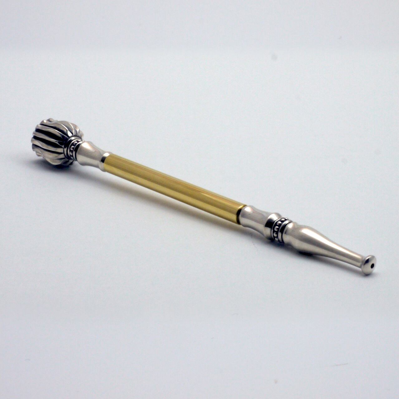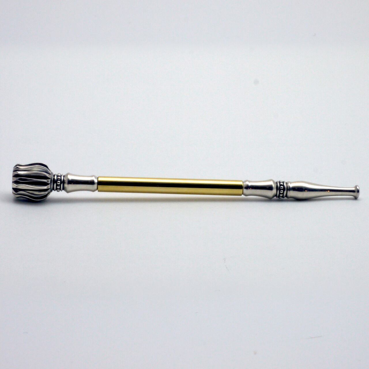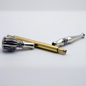 【シガレットキセルについて】「たばこであそぶ」ために制作した【 DaDa silver works 】の「大人の物好き」なシガレットホルダーです。キセルの雁首を真っ直ぐにしたビジュアルなので「シガレットキセル」と命名しています。「直向(ひたむ き)=キセルの雁首」「羅宇」「吸い口」の3ピースの構成にして、羅宇の長短、デザイン違いなどの別パーツと組み替えが可能なのと「見ても持ってもカッコ 良い」ところがチャームポイントです。