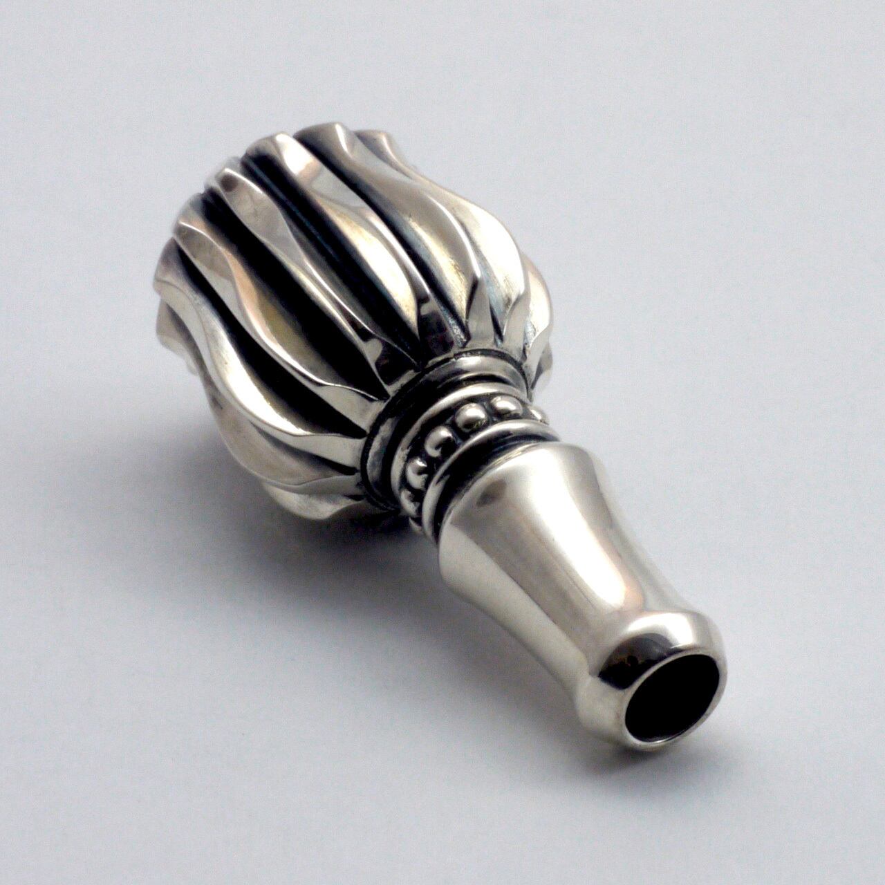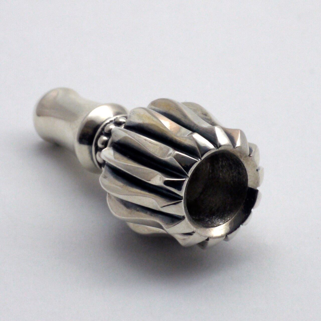 「シガレットキセル(シガレットホルダー)」の「直向(ひたむき)=キセルの雁首」「羅宇」「吸い口」の3ピースの構成の内の直向単品パーツです。後から追加したい時や、他のシガレットホルダーと着せ替えて兼用したい時などにどうぞ。