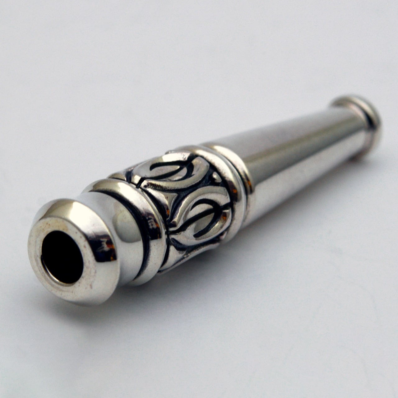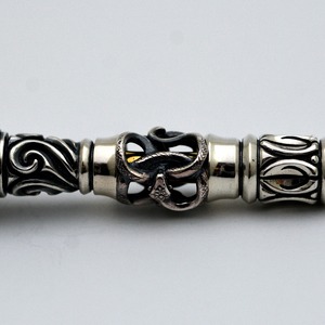 【シガレットキセルについて】「たばこであそぶ」ために制作した【 DaDa silver works 】の「大人の物好き」なシガレットホルダーです。キセルの雁首を真っ直ぐにしたビジュアルなので「シガレットキセル」と呼んでいます。「直向(ひたむ き)=キセルの雁首」「羅宇」「吸い口」の3ピースの構成となります。装飾羅宇パーツと組み替えが可能なのと、シルバーならではの迫力あるボリューム感がチャームポイントです。